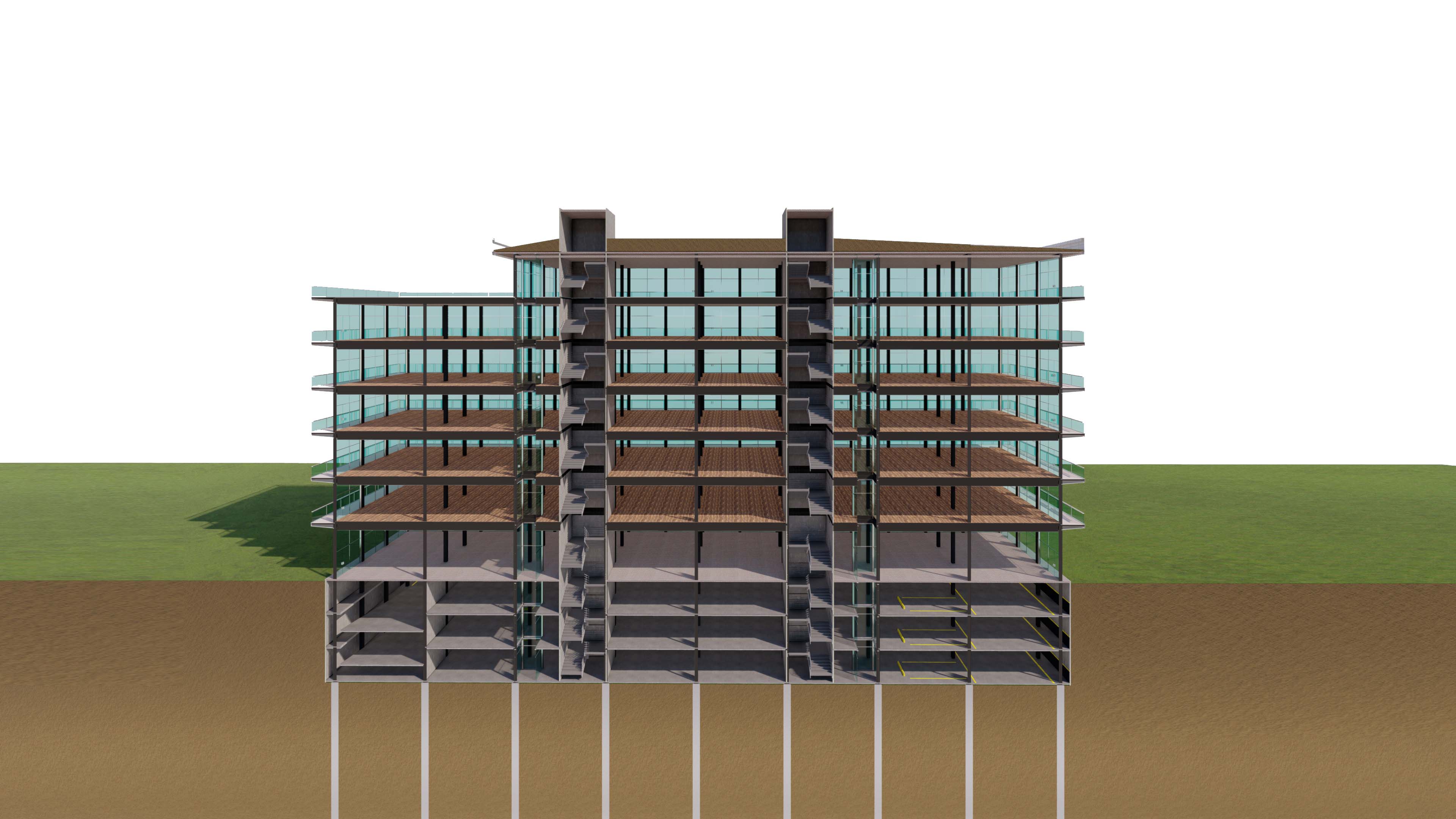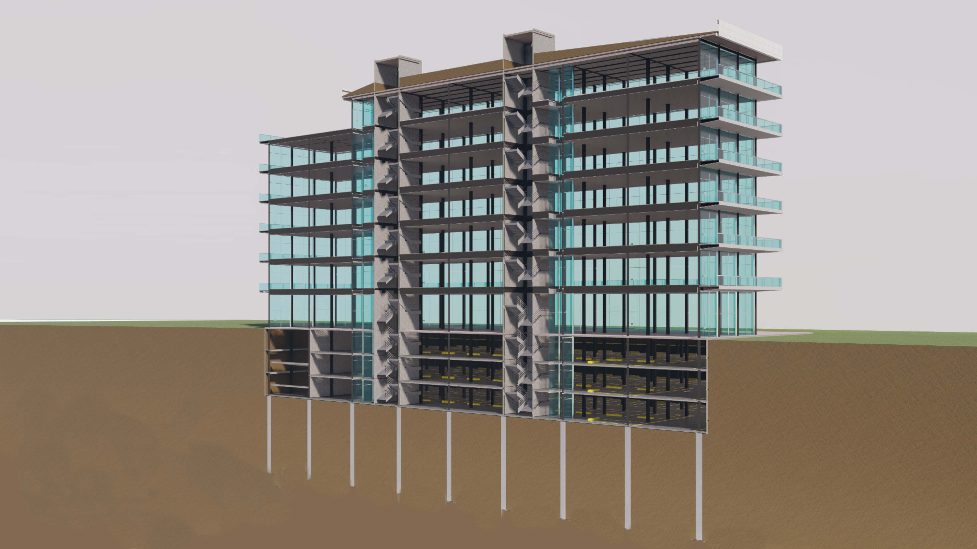 Colaboración en proyecto final de carrera, en la cual se realizo la colaboración del calculo estructural y el proyecto de visualización. Este tiene un concepto especial, que ademas de ser una estructura metílica, se ejecutaría con una metodología llamada "TOP DOWN", en la cual se construye el subsuelo a medida que se construye en altura.
